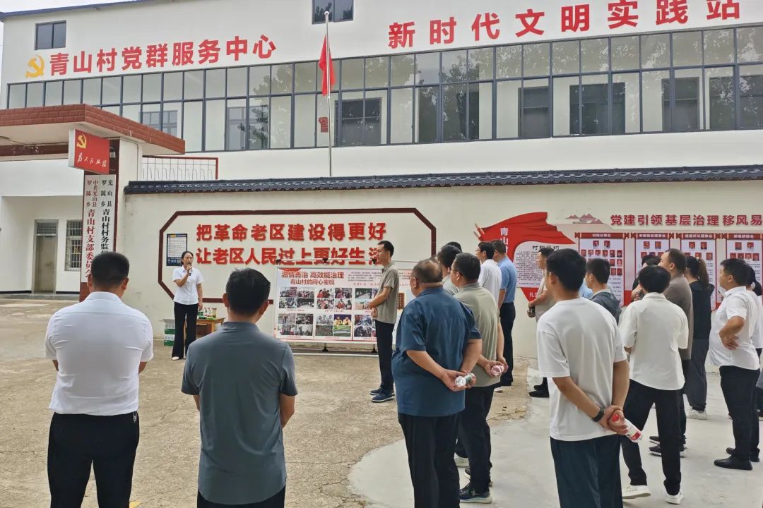 在罗陈乡青山村,实地参观村党群服务中心建设、“村务云讲堂”“助农直通车”双直播间运行情况。大家认真聆听村党支部书记深情讲述修建党群服务中心背后的暖心故事,启发各村如何从细微之处入手,把服务群众的举措落到实处,以真心换真情增进干群关系,进而为乡村有效治理筑牢根基。
