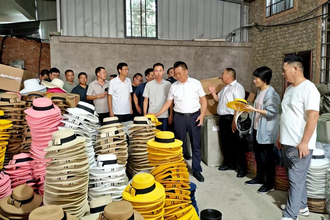 在紫水街道余集村领先帽业有限公司,大家来到编织帽及编织包生产车间,参观了产品生产至打包的系列流程,余集村党支部书记热情介绍该村帽业发展历程,销售情况以及带动村民增收情况。大家了解到,该厂实行计件工资,活儿简单不累,老年人和年轻人都能胜任,还支持将材料带回家加工,充分利用了村内闲置劳动力。