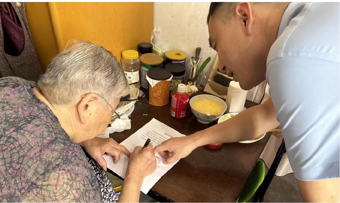 次日,两名工作人员带着文件袋准时出现在老人家中。见老人有些紧张,他们耐心解释:“阿姨别担心,咱们慢慢来。”确认老人神志清醒后,逐条说明合同撤销的法律后果,仔细答疑,并确保程序合规有效。 服务结束后,工作人员携带完备的签署材料返回窗口,迅速办结了合同撤销业务,实现群众诉求“一次办结”,用实际行动践行了“群众不动,服务上门”的便民理念,赢得了老人及家属的由衷感激与高度认可。