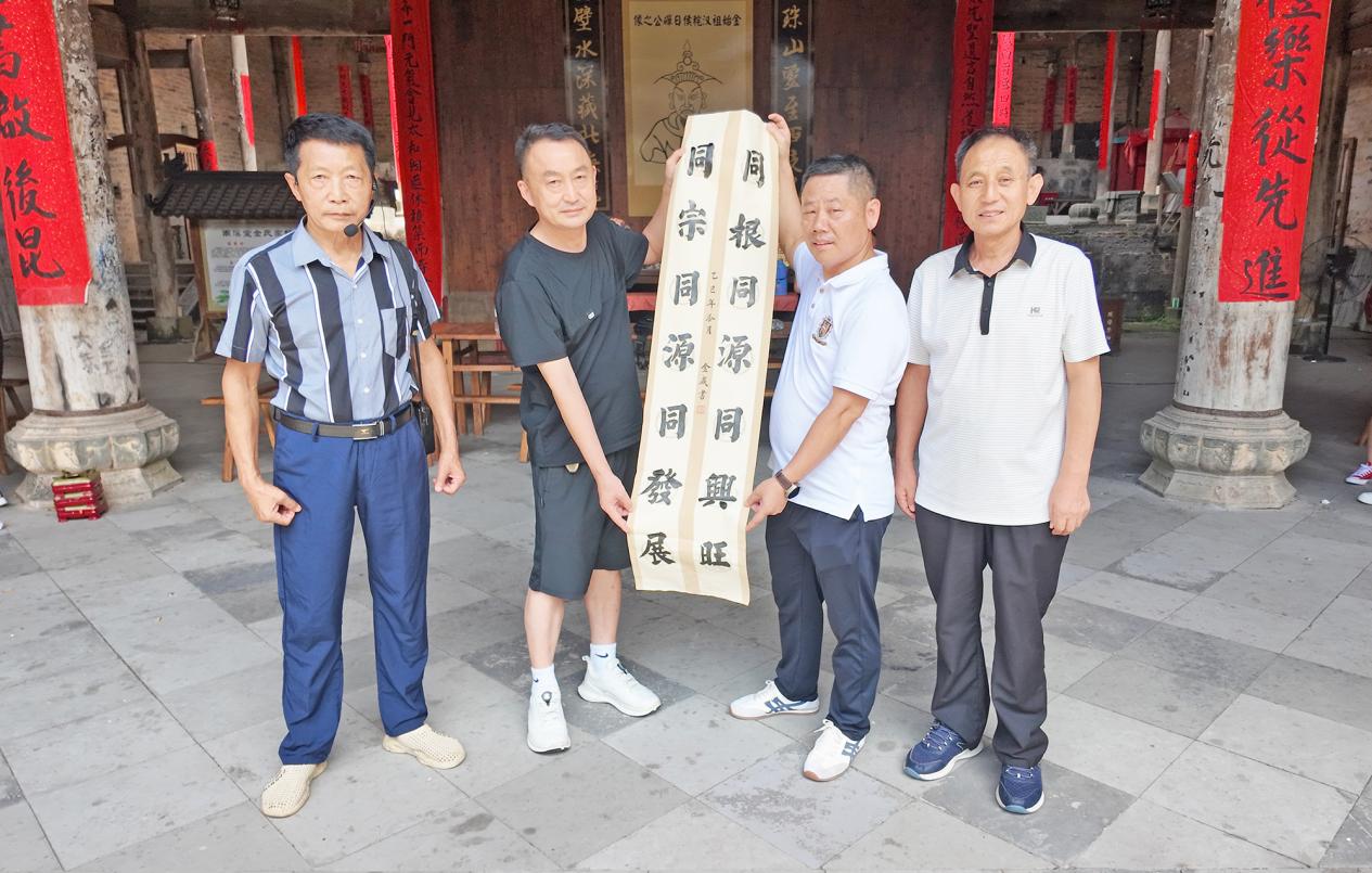 参观过程中,金坤副主席代表豫南宗亲向宗祠敬献了书法作品《同根同源同兴旺,同宗同源同发展》。他表示,这幅字不仅是血脉亲情的见证,更是跨省协作的承诺,希望未来能推动豫皖两地宗亲在文旅开发、非遗保护等领域深化合作。
