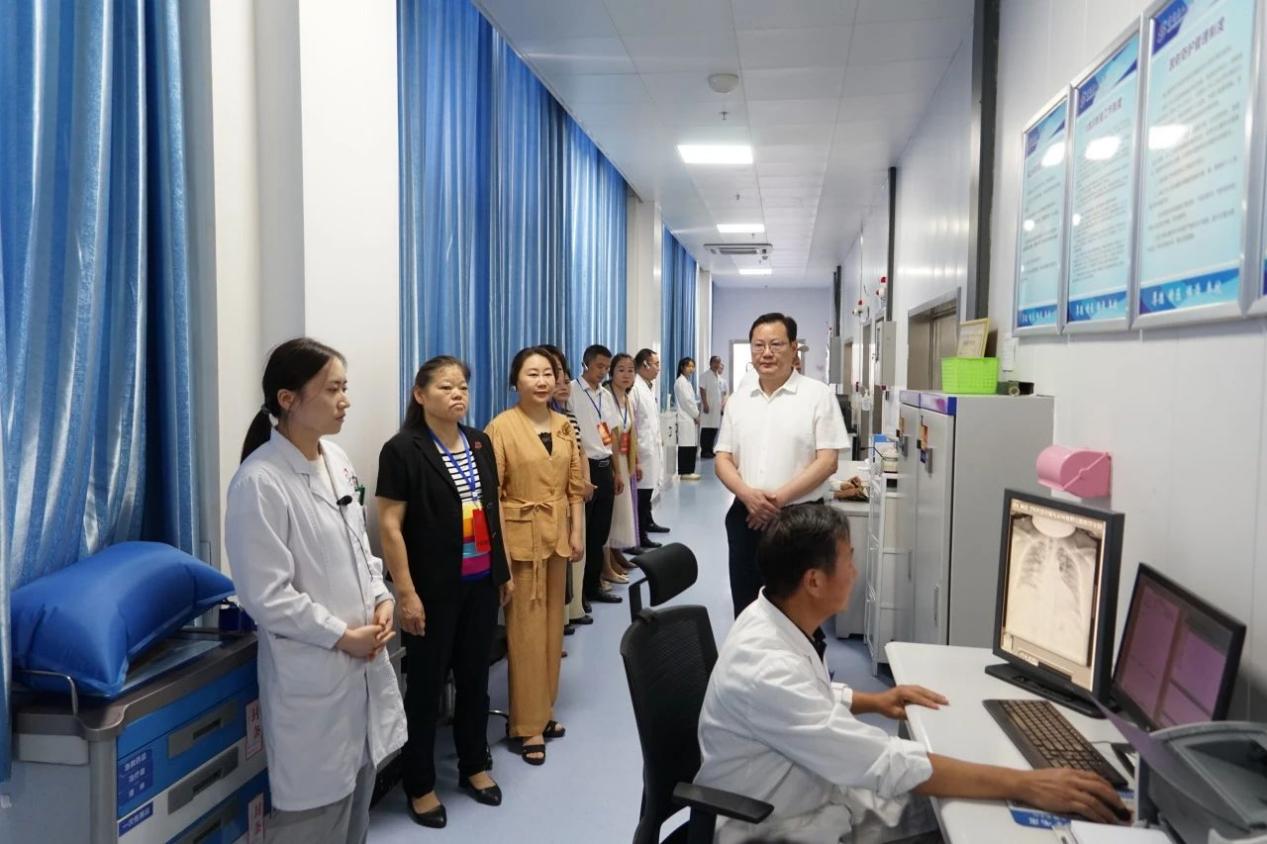 8月15日上午,信阳商城县人大常委会副主任张贤玉率领部分人大代表到商城县人民医院视察指导。商城县副县长祝良桂,县卫健委党组书记、主任曾凡军一同调研。
