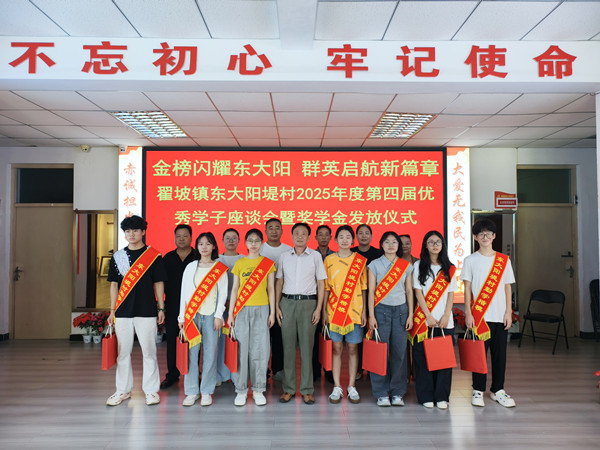 为激励莘莘学子勇敢追梦,推动人才成长与乡村发展“双向奔赴”,2025年8月18日,新乡县翟坡镇东大阳堤村组织开展了第四届优秀学子座谈会暨奖学金发放仪式。在村两委干部、家长代表共同见证下,9名2025年高考金榜题名的优秀学子身披绶带、接受表彰,以“金榜闪耀东大阳,群英启航新篇章”为主题,开启人生新征程。