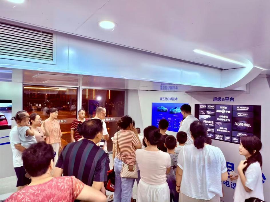 活动现场亮点纷呈,比亚迪携王朝网、海洋网全系车型,以及仰望、腾势、方程豹三大高端品牌强势亮相。在智能泊车演示区,仰望U8的“原地掉头”、王朝及海洋网车型的“智能泊车”、腾势的“易三方泊车”等核心科技动态展示,颠覆传统展览模式,打造沉浸式体验区,引发市民热烈反响,现场人流如织。活动期间,比亚迪同步发布“元UP”“海狮06EV”两款新车,进一步点燃市场消费热情。特设的“比亚迪新能源博物馆”通过闪电电池、DM技术、天眼之神辅助驾驶系统等核心“黑科技”的动态演示与实物模型,搭配工程师专业讲解,生动呈现了新能源汽车发展历程与技术创新实力,让市民近距离感受科技魅力。