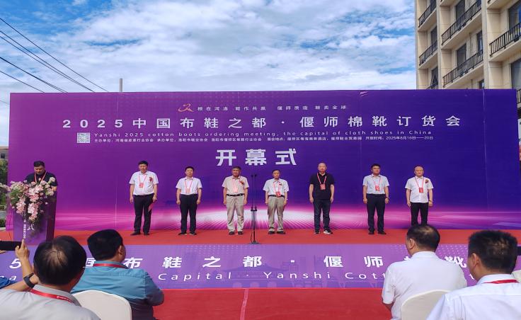 近日,2025中国布鞋之都·偃师棉靴订货会在洛阳市偃师区山化镇偃师鞋业贸易园正式拉开帷幕。中国皮革协会副理事长、河南省皮革行业协会执行理事长朱岩,河南省皮革行业协会秘书长陈东升,偃师区政协副主席李世伟,偃师区民营经济发展局局长李育英,山化镇党委书记李艳锋,偃师区制鞋行业协会会长张宏超等领导嘉宾出席开幕式。