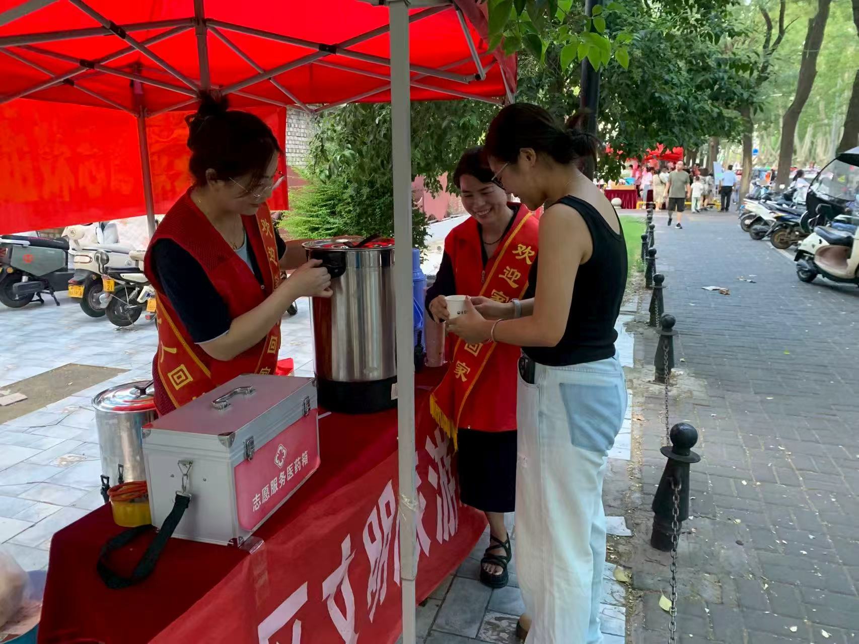 在天心·隋唐里南门这一核心点位,西关街道设立志愿服务岗亭配备饮用水、急救箱、景点介绍、特色业态文旅手册等物资,为游客提供贴心保障。
