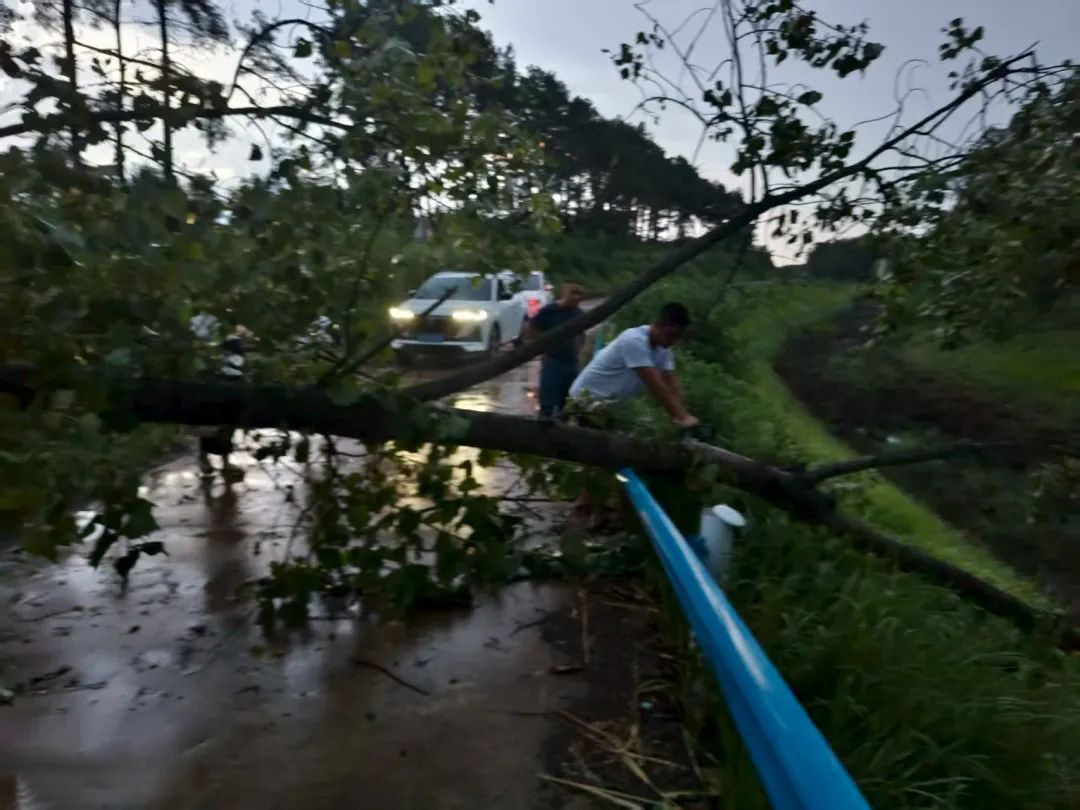 8月25日下午,信阳光山县弦山街道遭遇强对流天气袭击,短时强降雨伴随大风造成沿路树木折断、电线杆歪斜倒伏、房屋受损安全隐患大等险情,部分路段交通受阻,给居民出行和生命财产安全带来威胁。