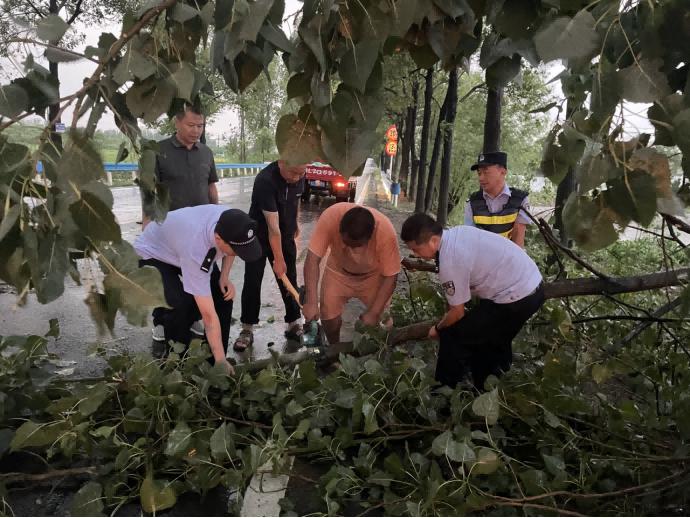8月25日18时许,罗陈派出所接到群众紧急报警称,由于短时雷暴大风,在S337省道张楼村蔡围子路段,有一棵大树被狂风刮倒,横亘在道路中央,阻碍车辆通行,存在极大交通安全隐患。
