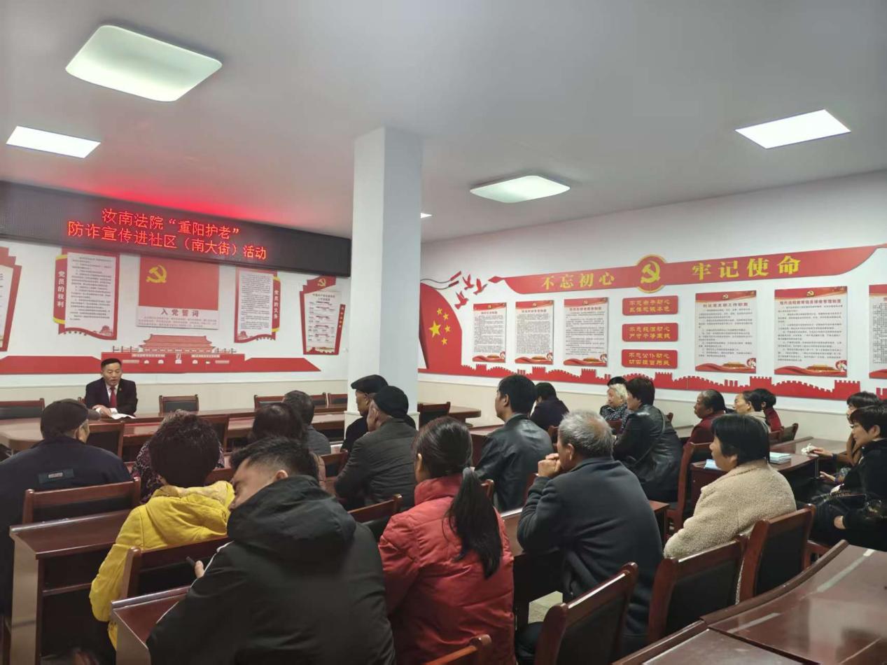 金秋十月,九九话重阳,为进一步预防和减少老年人电信诈骗案件的发生,切实增强辖区老年人防诈意识,守护老年人财产安全。10月29日,汝南县汝宁街道南大街社区联合汝南县人民法院共同开展“重阳护老”防诈宣传进社区活动。