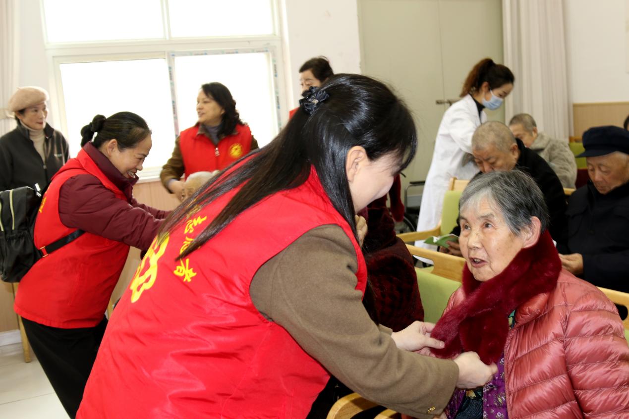最让人心里发热的,要数“围脖传情”环节。志愿者们手里捧着49条软乎乎的保暖围脖,一条一条送到老人手里,还细心地帮他们围好、系紧。遇到行动不方便的老人,志愿者就俯下身子,凑到床边轻声问“您看这样松紧合适不?”温柔的动作让老人眼里满是笑意。这围脖暖的不只是脖子,更是老人们的心,现场的空气都变得暖暖的。