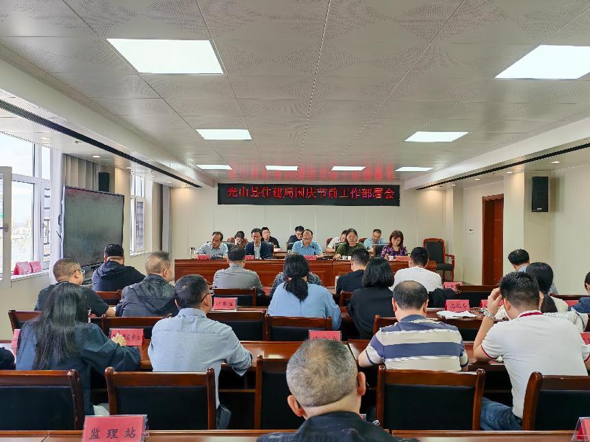 9月30日下午,信阳光山县住建局在九楼大会议室召开国庆节前工作部署会,专题安排国庆、中秋“双节”期间重点工作。光山县住建局党组书记、局长熊博闻主持会议,局全体班子成员、各股室及二级机构负责人参加会议。