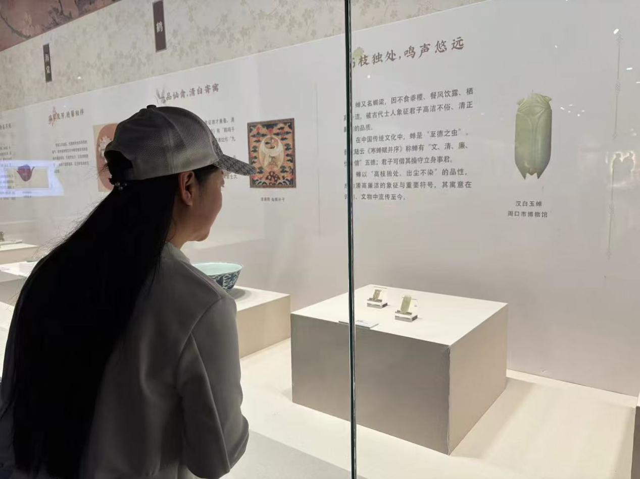 据介绍,此次参展的7件珍贵文物,包括二级文物3件,三级文物4件,时间跨度从战国至清代,种类涵盖玉器、铜器、文房用具等,均为周口市博物馆具有代表性的馆藏精品。它们不仅工艺精湛,更蕴含着深刻的文化寓意与廉洁精神,其中战国龙形卷云纹青玉佩线条流畅、工艺精湛,龙的刚正形象寄托着古人对正直品格的尊崇;汉白玉蝉以“汉八刀”工艺雕琢而成,造型简练,蝉以“饮露餐风、出尘不染”的品性,恰是古代文人高洁廉洁人格的象征。元代铜权作为古代度量衡标准器,承载着“权衡公正、不偏不倚”的价值追求,暗合为官理政需坚守准则的廉洁理念。两件明代“苍龙教子”玉带钩,以龙形寓意“教子修身、传承清廉”,展现了传统社会对廉洁家风的重视。清代端砚见证文人“笔耕自守、清白立世”的操守;清透雕蝠竹梅青玉牌,以竹的“虚心有节”与梅的“傲雪凌霜”,共同勾勒出“清雅自守”的廉洁意象。