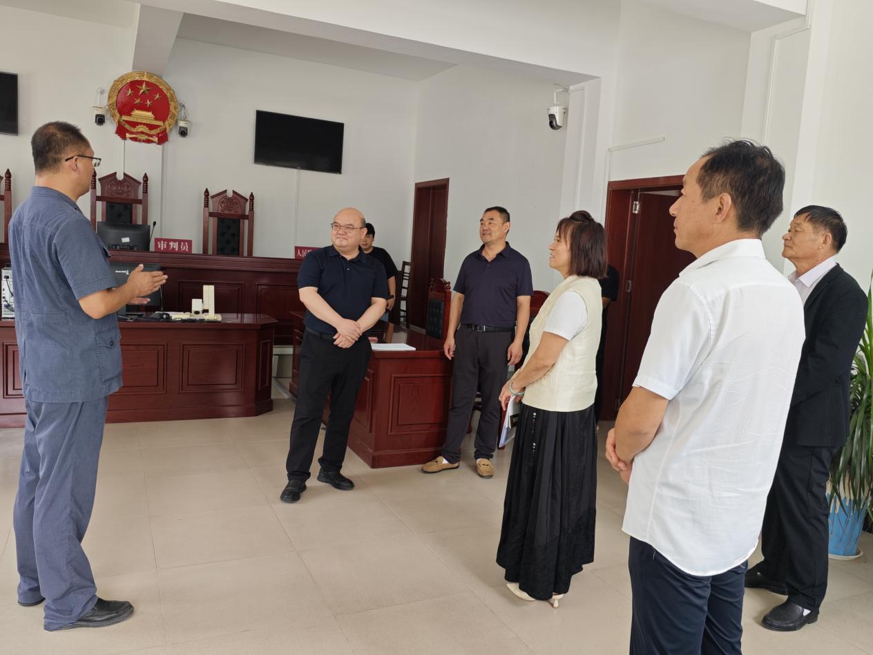调研组一行实地察看了宋岗法庭的调解室、审判庭等设施,详细了解了法庭日常运行及“一站式”多元解纷机制建设情况,并听取了法庭负责同志谢明关于“矛盾化解、多源共治”工作的专题汇报。