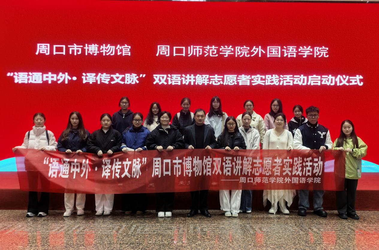 “语通中外”,是语言的桥梁;“译传文脉”,是文化的使命。本次启动仪式的成功举行,是周口市博物馆与周口师范学院外国语学院深化馆校合作、协同育人的重要成果。双方将以此次活动为起点,持续探索合作新模式,共同培养一批了解周口、热爱周口、善于向世界讲述周口故事的青年文化使者,让沉睡的文物“活”起来,让周口的声音“走”出去,为传承中华优秀传统文化、促进中外文化交流互鉴贡献新的力量。(通讯员:梁军阳)