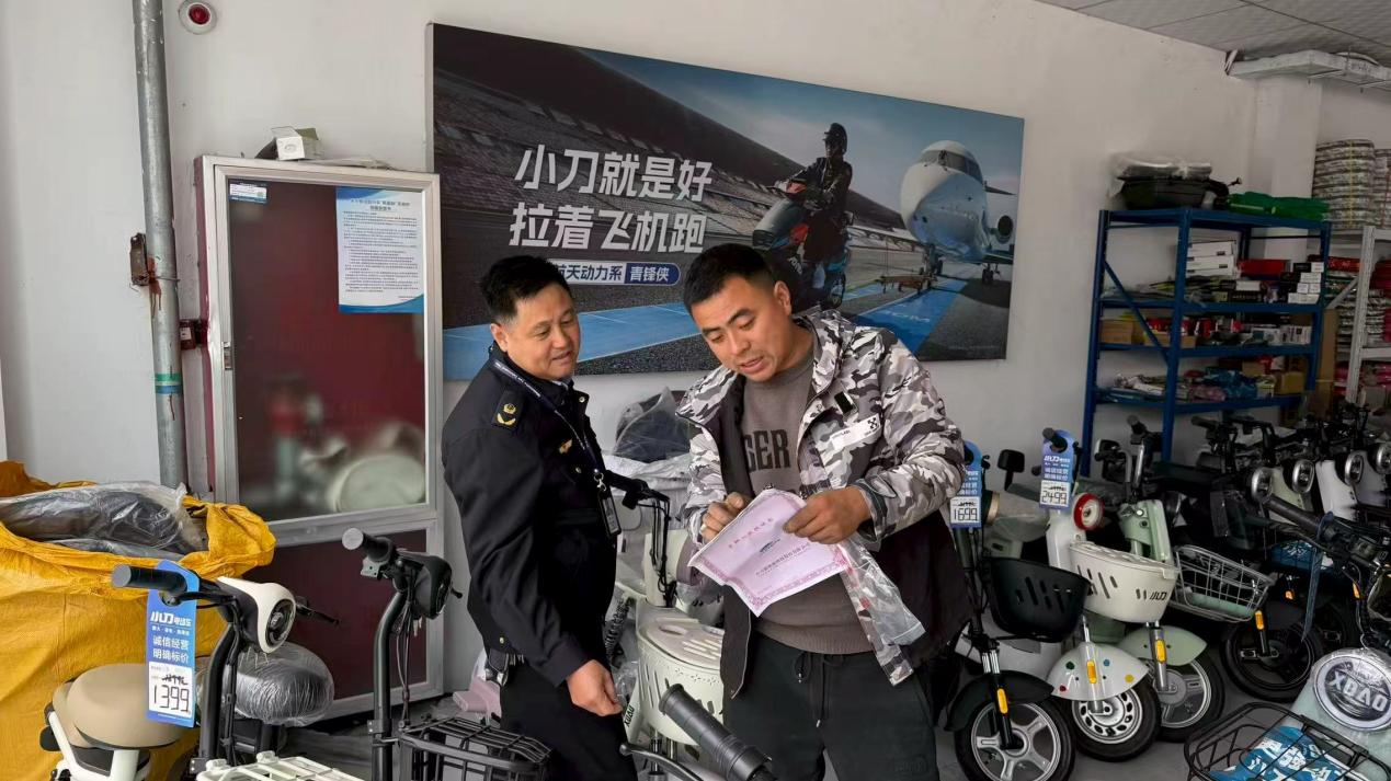 强化质量帮扶,加强源头管控。为强化源头管控,增强经营单位守法经营意识,县市场监管局坚持“提质强企”理念,提升监管成效。一是积极开展宣传引导,督促经营者严格履行产品质量主体责任。县市场监管局先后召开电动自行车经营单位约谈会、开展产品质量、认证相关法律法规、产品质量安全主体责任履行等方面的培训及考试,增强经营者守法责任意识,提升产品质量管控能力。检查过程中,执法人员积极向经营者宣传相关法律法规及产品执行标准,督促经营者严格履行进货查验义务,禁止私自违规改装,做到诚信守法经营。截至目前,全县共有一百余家电动自行车经营者签订了承诺书,承诺依法经营,切实落实销售单位的质量安全主体责任。二是强化新国标宣贯,督促消化旧标产品。县市场监管局先后在县主要媒体发布《电动自行车消费提示》《关于电动自行车实施新国标的提醒告知书》等重要提醒,同时印制新国标提醒告知,逐户张贴,并讲解电动自行车新国标要求,督促各经营者在规定日期内尽快消化旧标产品,加强新购产品标识查验,防范因标准更新带来的质量风险。