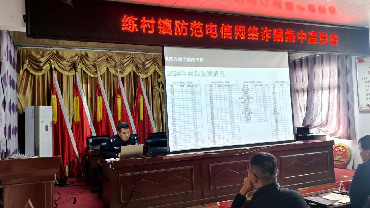 为有效应对当前严峻的电信网络诈骗犯罪形势,全面提升镇村干部的识诈、防诈、反诈能力,切实守护人民群众的“钱袋子”,10月27日,新蔡县练村镇组织召开防范电信网络诈骗集中宣讲会,练村镇派出所所长方波担任主讲,全体镇村干部到场参加学习。