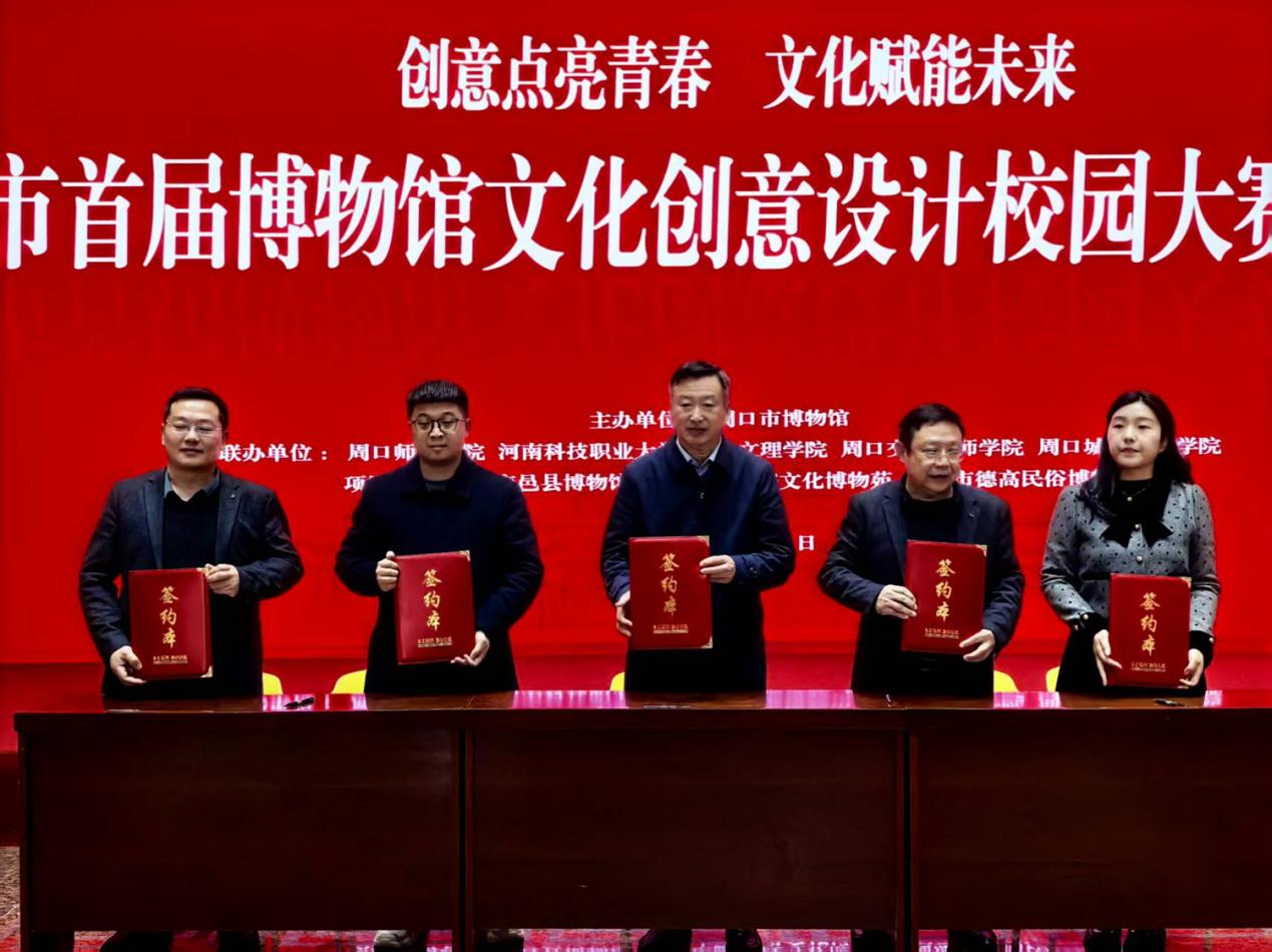 周口市博物馆馆长周建山表示,文化是民族的血脉,创意是发展的动力,也是时代进步的源泉。周口这片古老而富有活力的土地,承载着深厚的历史文化底蕴,从羲皇故都、老子故里的历史见证,到沙颍河畔的现代文明,丰富的文化资源为大学生们提供了无尽的创作灵感和宝贵的精神财富。这次文化创意设计校园大赛,正是希望大学生们能够充分利用这次机会,在博物馆文化创意设计方面敢于突破,勇于探索,将课堂所学与社会实践紧密结合,将个人兴趣与时代需求紧密相连,在创作中感受文化的温度,在大赛中锤炼创新的能力。这不仅是一场比赛,更是一次文化的洗礼、一次创意的碰撞、一次成长的历练。希望通过这次文创设计大赛,能够涌现出更多彰显周口特色、富有时代气息的优秀文化创意作品,让周口的文化在传承中绽放更加璀璨的光芒。期待看到大学生们充满想象力与生命力的优秀作品,期待他们为周口的文化发展注入青春的动能。