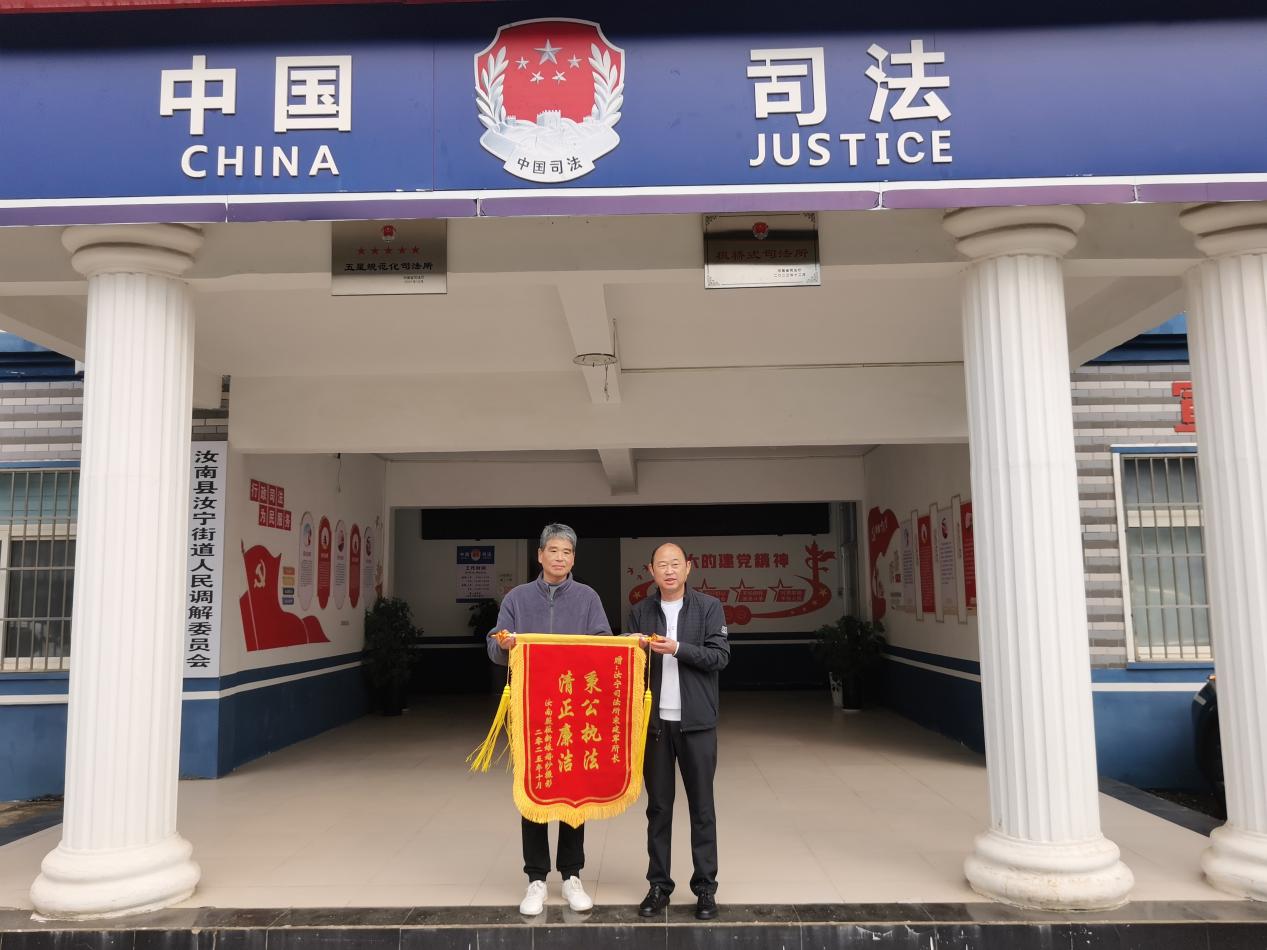 近日,汝南县汝宁街道南海社区两户居民因一方私自占用另一方的滴水搭建简易棚导致另一方房屋受损的矛盾纠纷,经汝南县汝宁街道司法所工作人员和南海社区干部及网格员反复耐心疏导,最终双方达成和解。纠纷化解后,受损方当事人特意向汝宁司法所所长宋建军赠送“秉公执法清正廉洁”锦旗表达感谢。