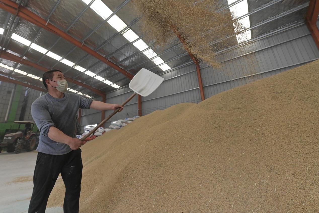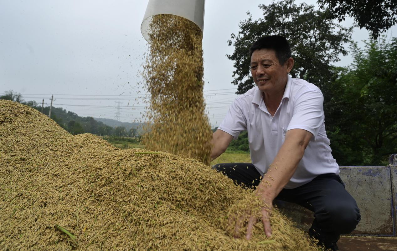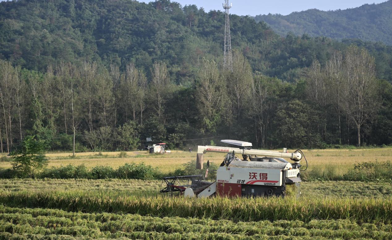 10月9日,在信阳市新县陈店乡、郭家河乡等乡镇,金黄色的稻田一望无际,空气中弥漫着淡淡的稻香,农户正忙着收割和晾晒。当前,正值“三秋”生产关键阶段,面对复杂多变的天气,新县广大农户抢抓有利天气,利用传统收割与机械收割相结合的方式收割水稻,打响了抢收秋粮“保卫战”,加快秋粮收获进度,确保颗粒归仓。(通讯员:焦汉平)